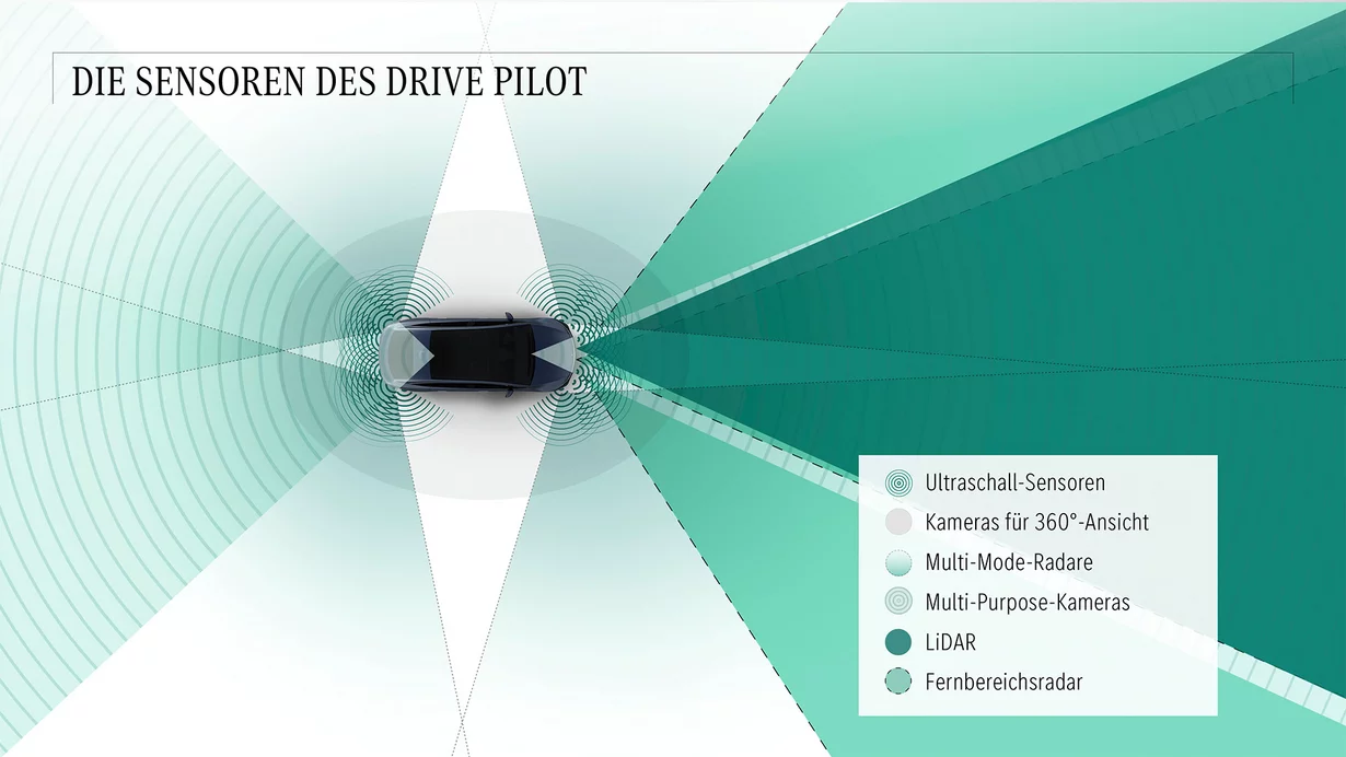 L'abréviation Lidar signifie en anglais « Light Detection and Ranging » et désigne une technologie de mesure précise de la distance à l'aide d'impulsions laser, capable de détecter des structures et des surfaces tridimensionnelles. Le capteur est non seulement capable de déterminer les distances, mais aussi, grâce au nuage de points 3D, de créer une image en couleur qui permet de distinguer les contours d'objets tels que les piétons, etc. Au sens figuré, le capteur peut assumer la fonction de caméra avant et de radar dans un seul composant. Alors que la caméra avant ne capture que des pixels et que le logiciel d'évaluation peut classer les objets à partir des images, le radar est capable de localiser les objets avec précision. Le radar détecte à la fois la vitesse relative par rapport à un objet, la distance et l'angle par rapport à son propre véhicule.